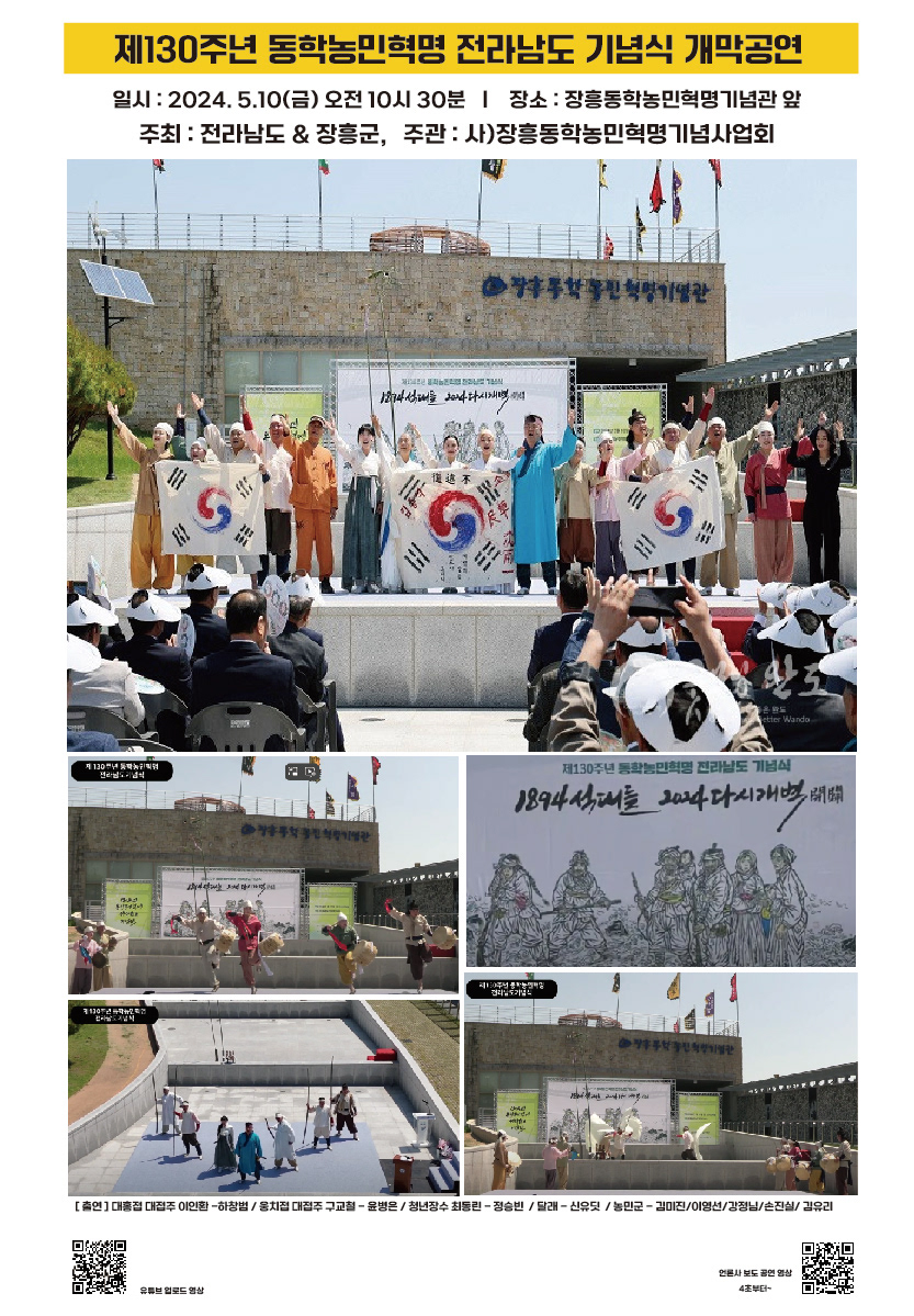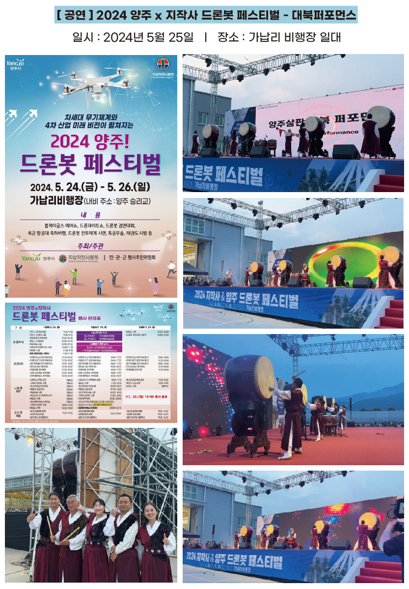 [5.25] 양주 x 지작사 드론봇 페스티벌 대북퍼포먼스 [5.24] 5월매마금_젊은광대전 2인2색 [5.10] 제130주년 동학농민혁명 전라남도 기념식 개막공연 [5.3] "살판나는 날" 광염드림교회, 극장초대공연